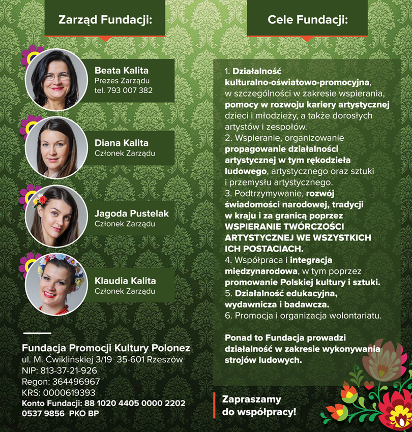 "Polonez II" wytwarza najpiękniejsze stroje ludowe.Kontynuuje 30-letnią tradycję zdobnictwa i szycia strojów regionalnych.